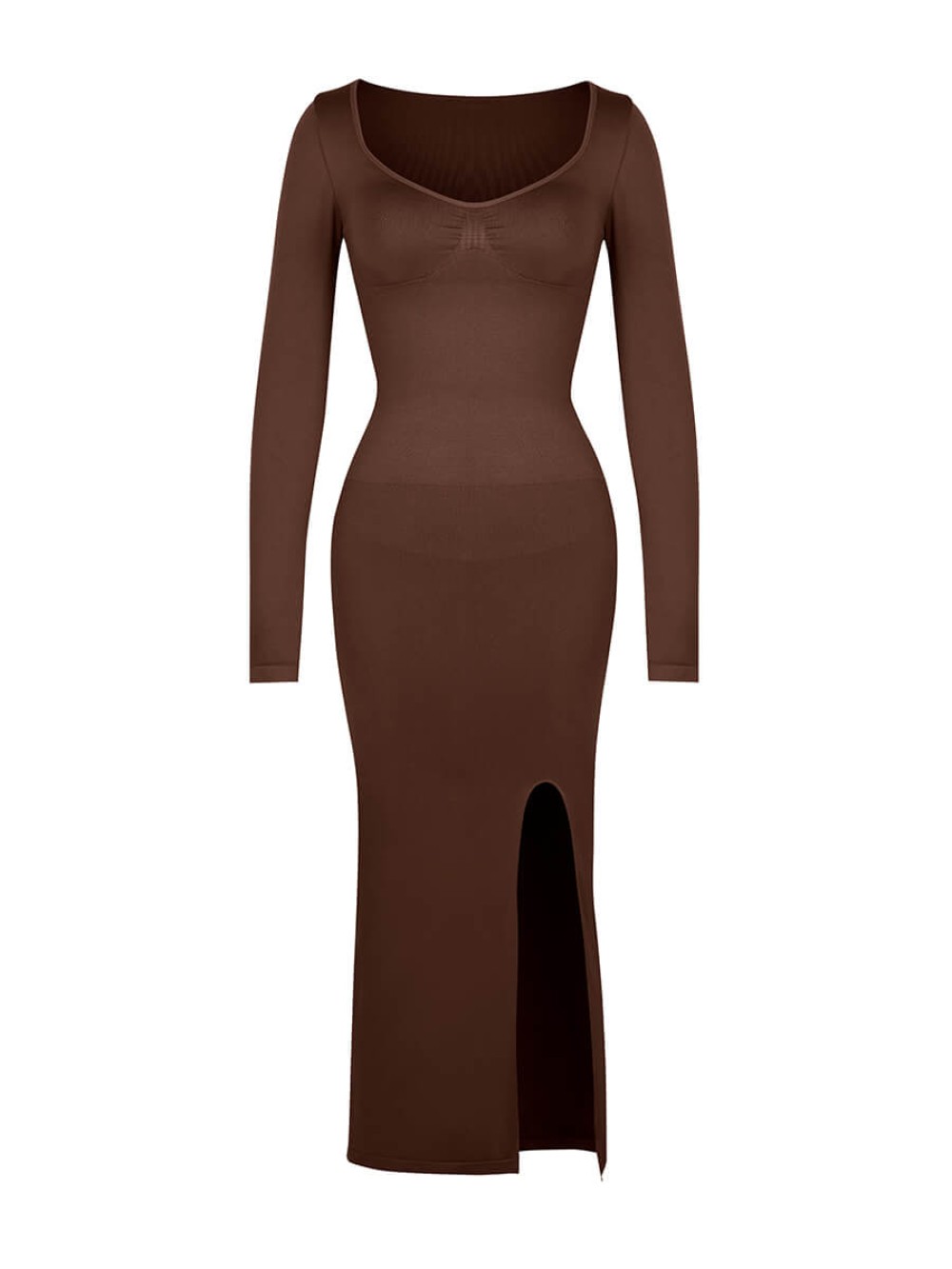 Eco-friendly Seamless Bust Support Tummy Control High Side Slit Shaping Dress