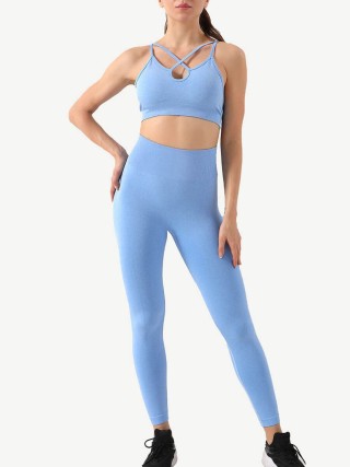 Blue New Design Seamless Sport Set SKU:YD220017-BU1