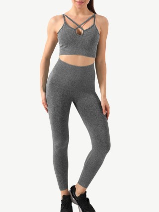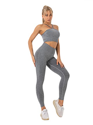 Grey Seamless Yoga Leggings Set SKU:YD220023-GY1