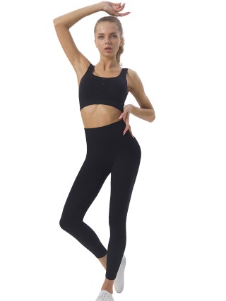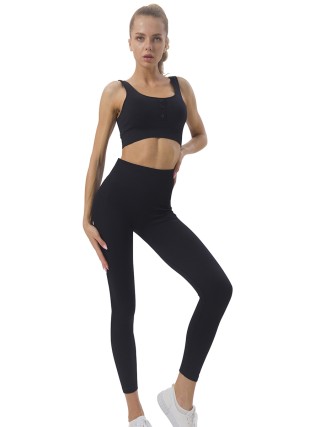 Black Ribbed Seamless Sport Set SKU:YD220020-BK1