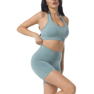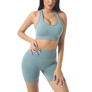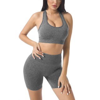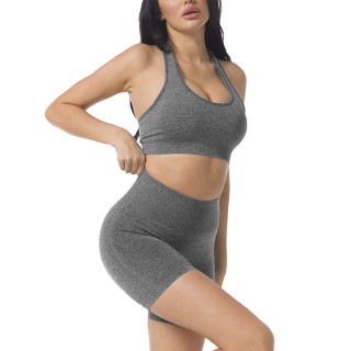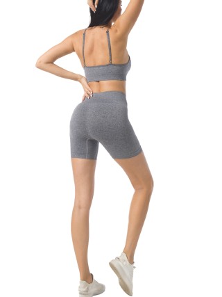 Two Pieces Seamless Short Yoga Set SKU:YD220030-GY1
