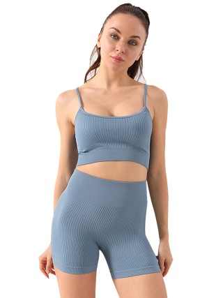 Ribbed Short Women Yoga Set SKU:YD220025-BU1