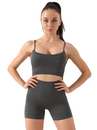 New Design Short Ribbed Yoga Set SKU:YD220024-GY1