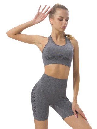 Two Pieces Set Seamless Yoga Wear SKU:YD220022-GY1